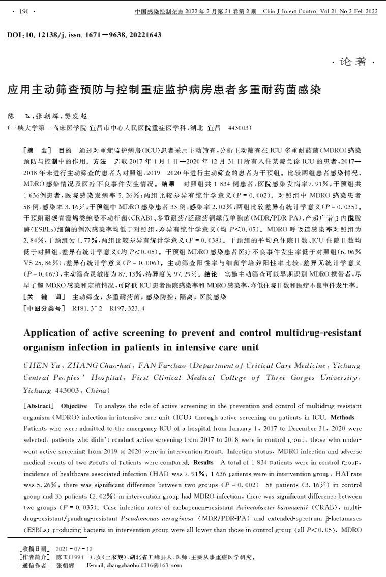 文章来源:《中国感染控制杂志》 网址: http://www.zggrkzzzzz.cn/zonghexinwen/2022/0405/866.html